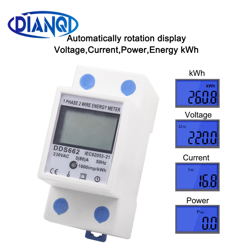 Однофазный двухпроводной ЖК-цифровой дисплей ваттметр энергопотребление электрический счетчик кВтч AC 230 В 50 Гц электрическая din-рейка