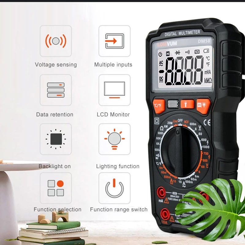 LOMVUM мультиметр Профессиональный AC DC Цифровой мультиметр вольтметр тестер метр цифровой ЖК-дисплей 5999 Cunts метр тестер
