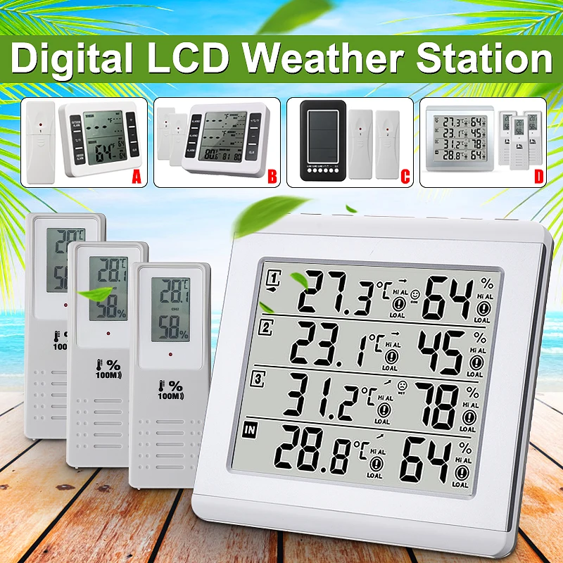 Цифровой Электронный беспроводной Крытый/Открытый термометр с 2 Датчики Будильник Метеостанция 3 вида температура мониторы