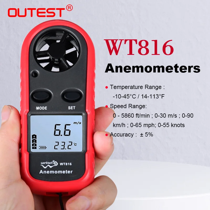 Анемометры, ручной измеритель скорости ветра, портативные манометры, термометр воздушного потока с ЖК-подсветкой для виндсерфинга, Kiteflying