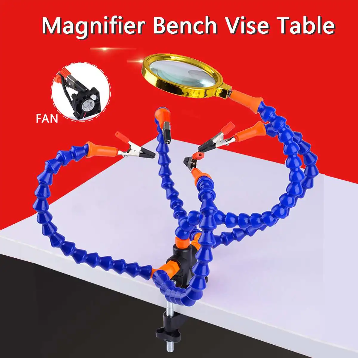 Третий ручной держатель для пайки печатных плат инструмент четыре руки помощь ручной работы Ремонт помощи сварочная станция USB 6X Лупа освещ...