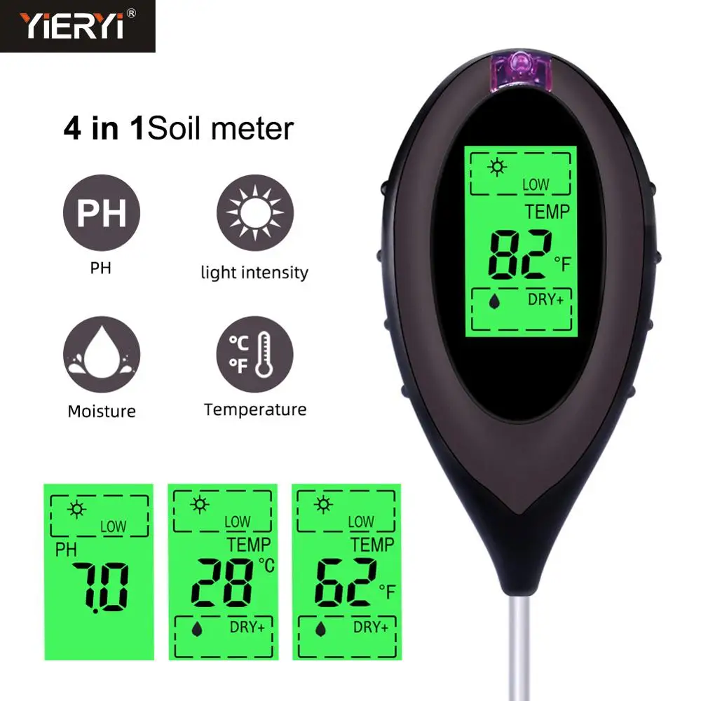 Новый цвет 4 в 1 измеритель влажности почвы PH Измеритель Температуры Тестер солнечного света для садоводства, сельского хозяйства, газона