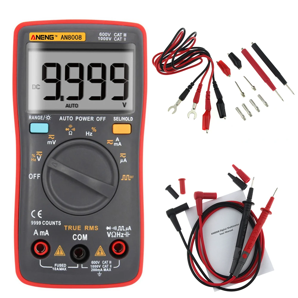 ANENG Цифровой мультиметр AN8008 True-RMS 9999 отсчетов квадратная волна подсветка AC DC Напряжение Амперметр Ток Ом Авто/руководство