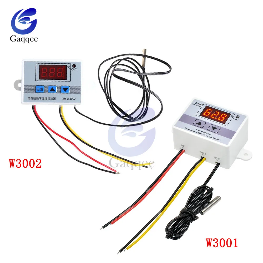 W3001 W3002 светодиодный цифровой контроль термостат температура микрокомпьютер переключатель DC 12V 24V AC 110 V-220 V Терморегулятор с зондом