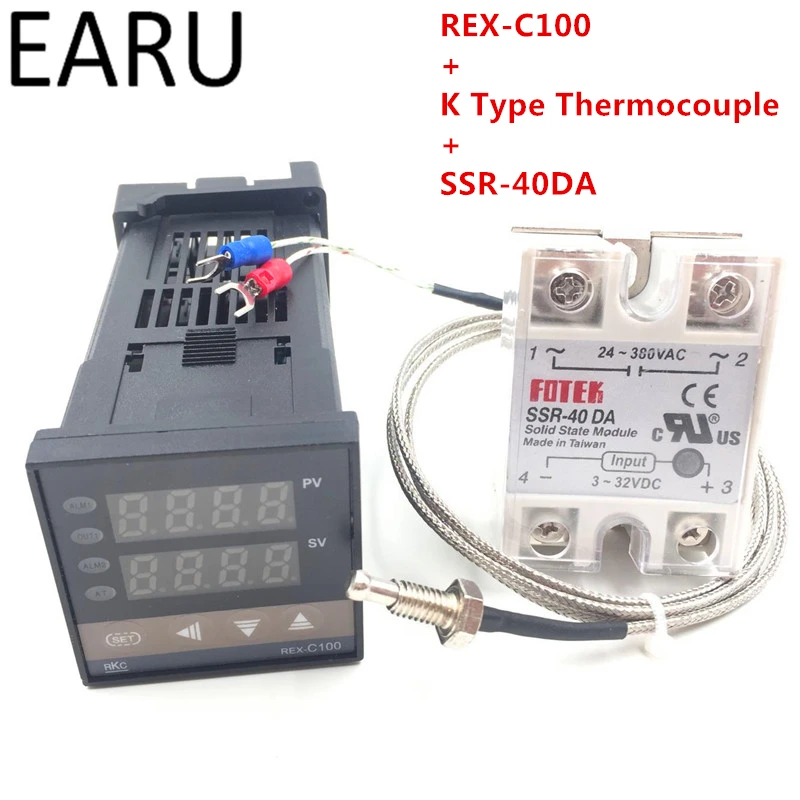 РКЦ Цифровой PID Температура контроллер термостат REX-C100 + Max 40A ССР SSR-40DA реле + K термопары M6 зонд высокое качество