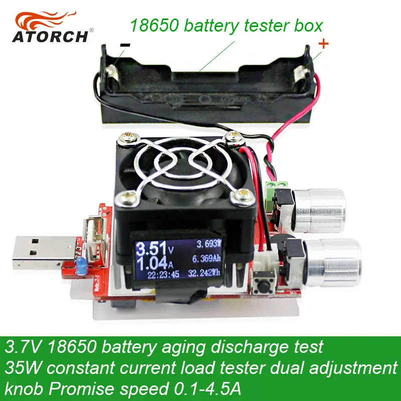 ATORCH 3,7 В 18650 Батарея старения разряда Тесты 35 Вт постоянного тока двойной регулируемая ручка нагрузки Тесты er DC USB Тесты er 0,1-4.5A