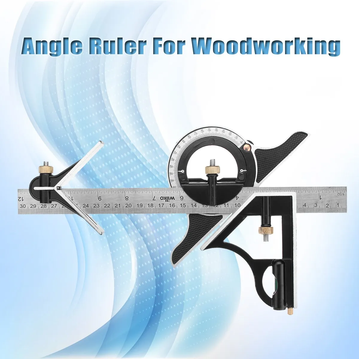 Высокое качество 12 дюймов Регулируемый Комбинации Tri-Площади Правитель Нержавеющая сталь машинист измерения угол линейка для инструмент и...