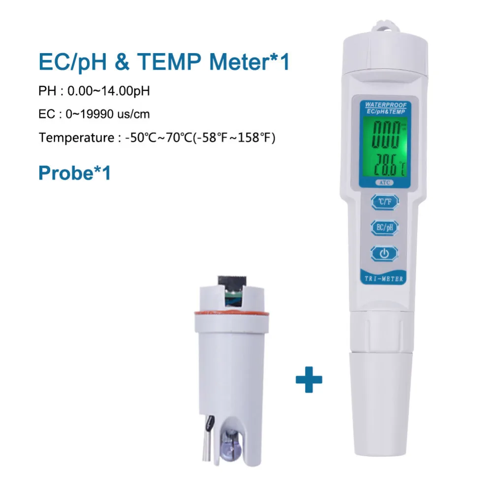 Три в одном PH-983 EC/PH & TEM качество воды тестер ручка подсветка цифровой рН-метр и зонд для аквариума, бассейна, лаборатории
