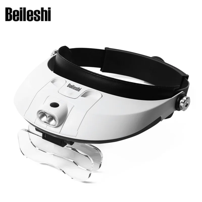 Beileshi светодиодная Повязка На Голову лупа 1,0-6.0X увеличительное лупа съемный налобный фонарь увеличительное стекло с 5 Сменные линзы