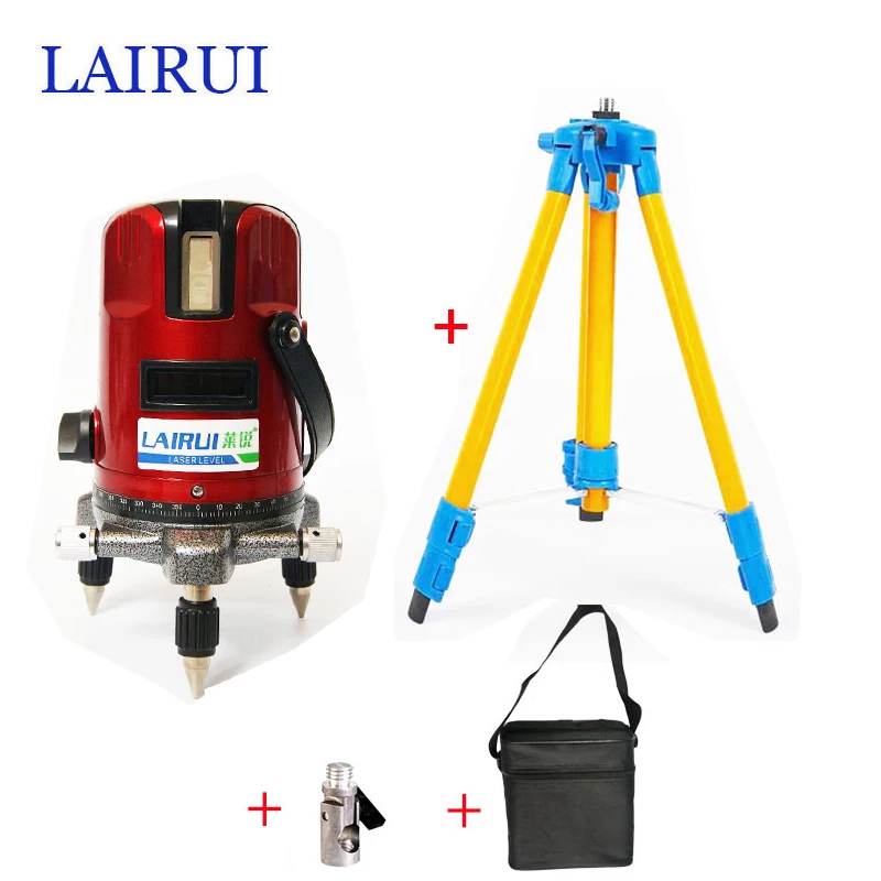 Lairui бренд 5 линий 6 очков лазерный уровень 360 градусов Поворотный крест лазерный уровень 635nm с наружным режимом штатива в наличии