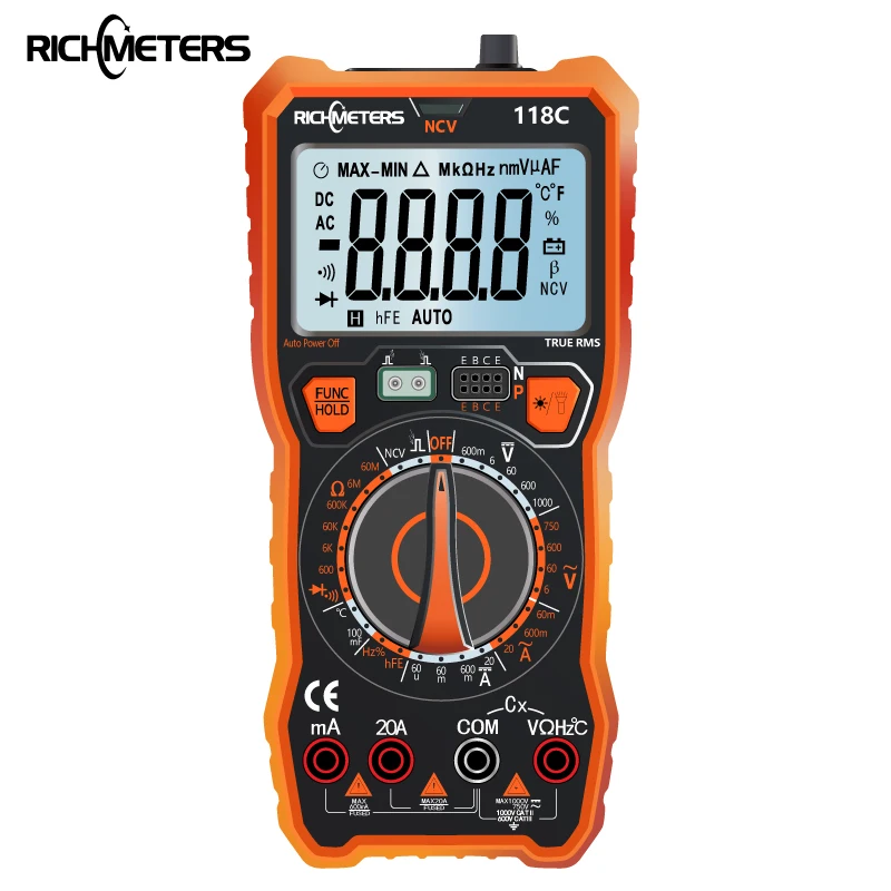RICHMETERS 118C 20A Цифровой мультиметр 6000 отсчетов NCV HFE True-RMS 100mF емкость магнит AC/DC Напряжение Ток температура