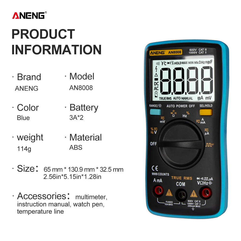 ANENG AN8008 Цифровой мультиметр 9999 отсчетов True-RMS квадратная волна подсветка AC DC Амперметр напряжения тока Ом Авто/руководство