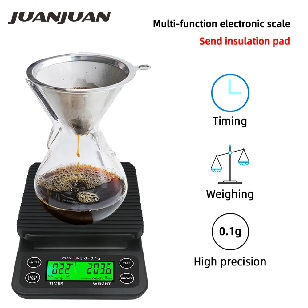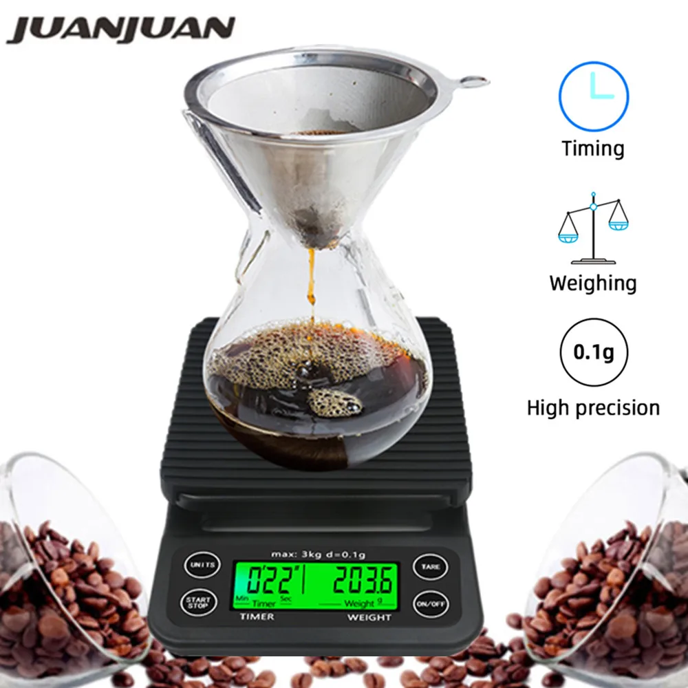 3 кг/0,1 г 5 кг/0,1 г цифровые кофейные весы кухонные ювелирные изделия Вес с таймером Высокая точность ЖК электронные весы 40% скидка