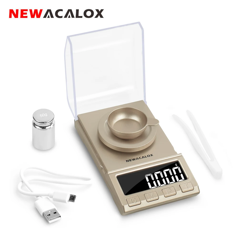 NEWACALOX 0,001 г точные цифровые ювелирные весы 50 г/100 г Электронные весы с питанием от USB ЖК-дисплей мини лабораторные весы 0,001 г