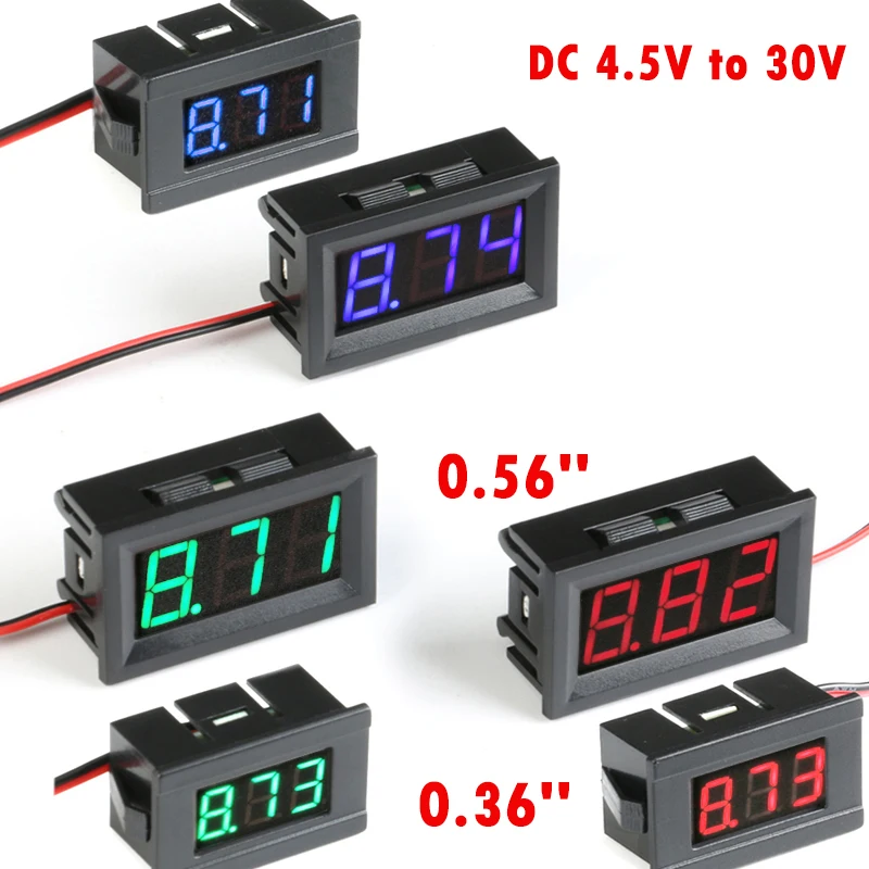 Мини цифровой вольтметр тестер постоянного тока 4,5 в до 30 в цифровой вольтметр напряжение Панель метр красный/синий/зеленый Вольтметр для э...