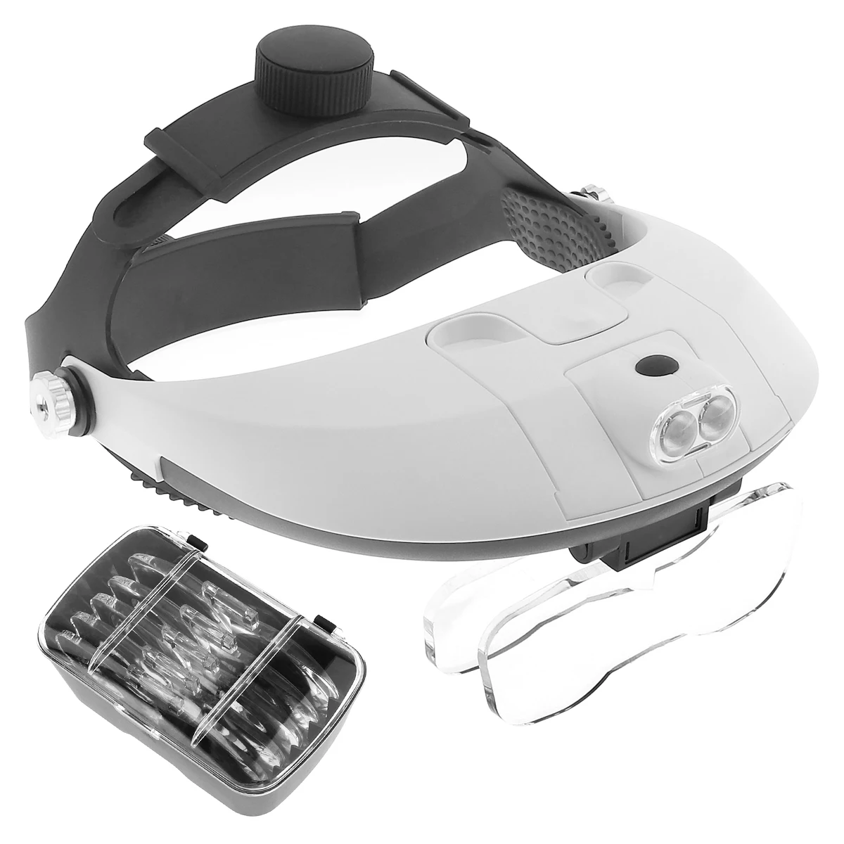 Регулируемый носить повязка лупы Портативный Съемная Лупа светодиодный светильник с 5 оптические линзы для ювелирных изделий Ремонт часы ч...