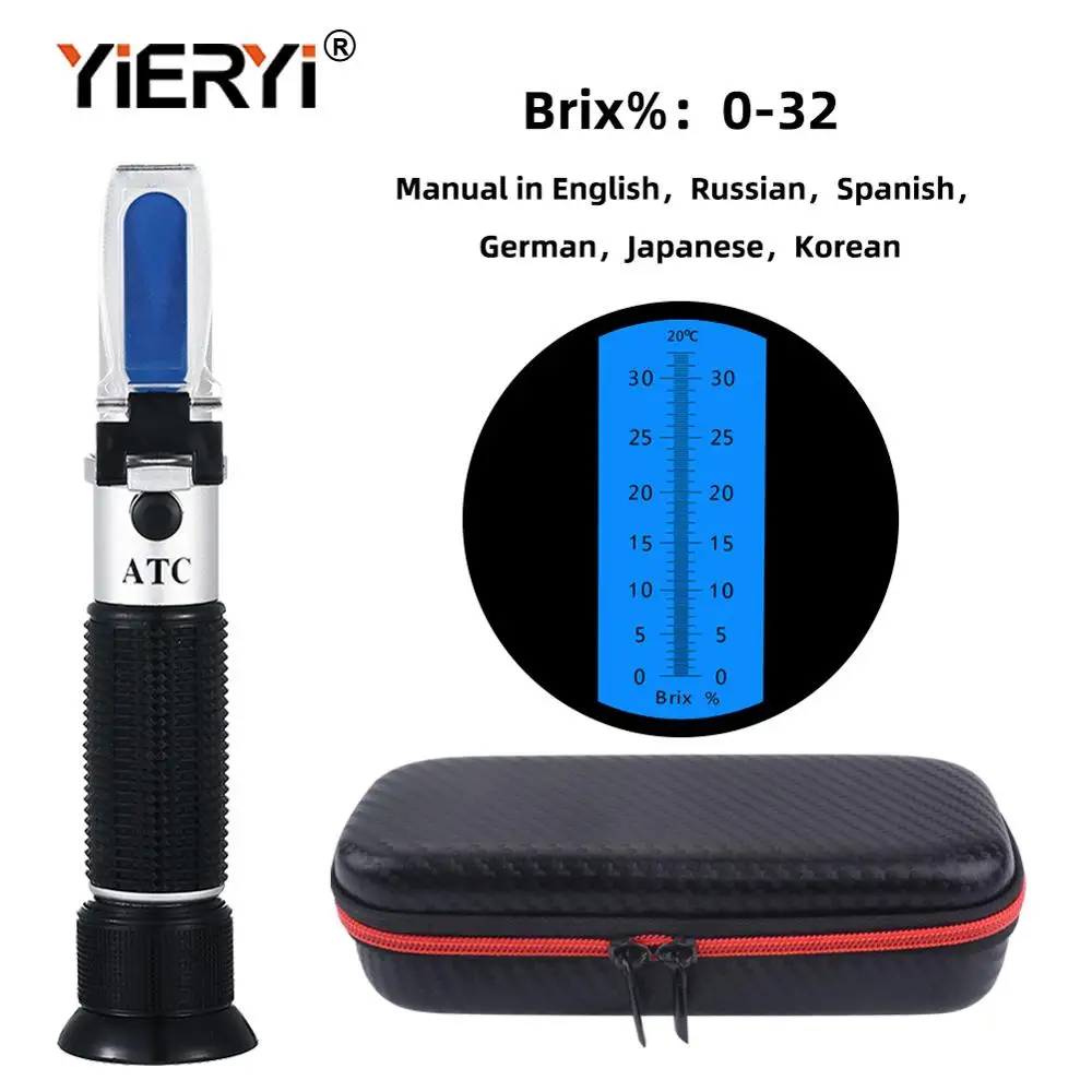 Yieryi рефрактометр Брикса Ror кубик сахара пиво 0-32% Brix Ручной рефрактометр УВД оптический тестовый метр с черной сумкой