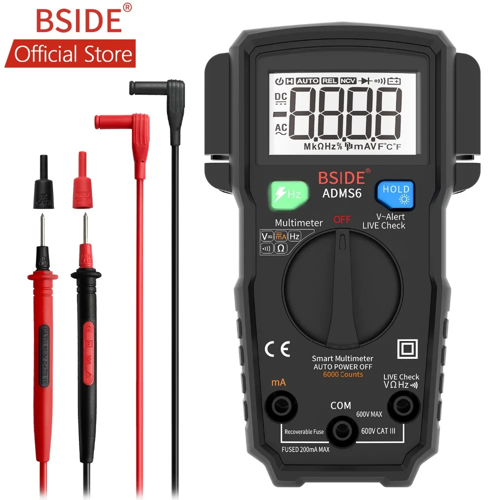 BSIDE ADMS6 мини умный цифровой мультиметр Умный Автоматический диапазон 6000 отсчетов DMM автоматический Ом Гц V-Alert NCV Карманный тестер
