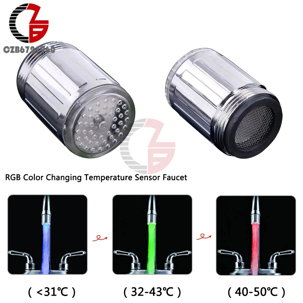 Светящийся светодиодный смеситель для воды, кран для душа, насадка для воды, ванная комната, кухонный нагреватель, термостат, синий, 3 цвета