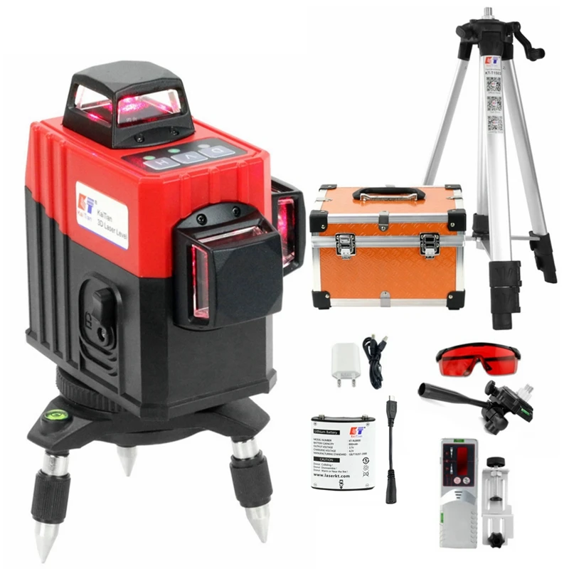 Kaitian 3D 12 линий штатив с лазерным уровнем самонивелирующийся 360 горизонтальный и вертикальный красный крест Лазерная батарея мощный наружны...