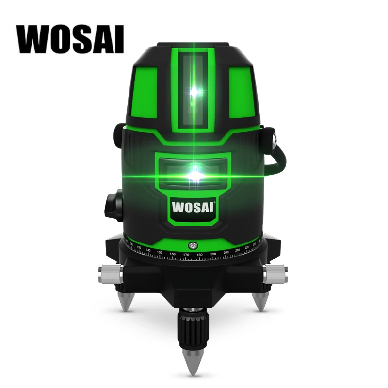 WOSAI зеленый лазерный уровень 5 линий 6 очков лазерный уровень автоматическое самонивелирование 360 вертикальный и горизонтальный наклон и 532nm...