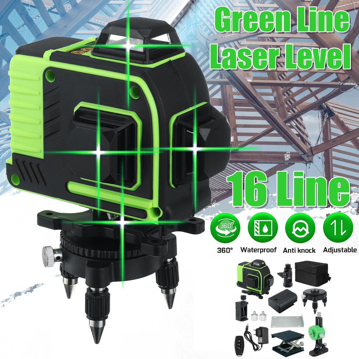 Лазерный нивелир-16 линия 360 горизонтальный вертикальный Крест 3D зеленый светильник лазерный нивелир самонивелирующийся супер мощный лазерный луч