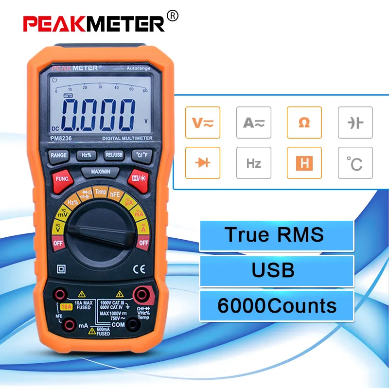 Цифровой мультиметр тестер Авто Диапазон multimetro Температура тестер и регистратор данных 6000 отсчетов peakmeter MS8236