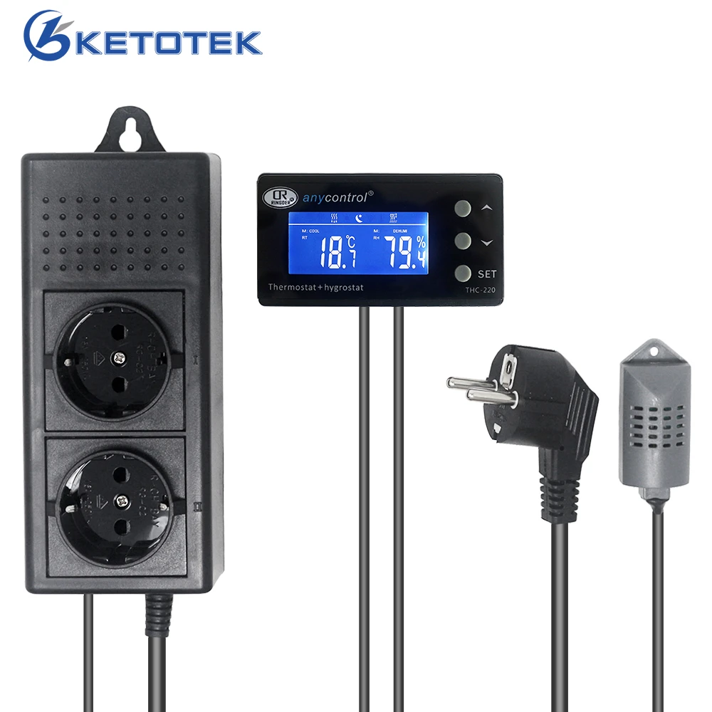 110 В 220 В AC, ЕС, Великобритания, США, цифровой термостат, гигростат, THC-220, регулятор температуры и влажности, тепловой холодный выход, выход Humi Dehumi