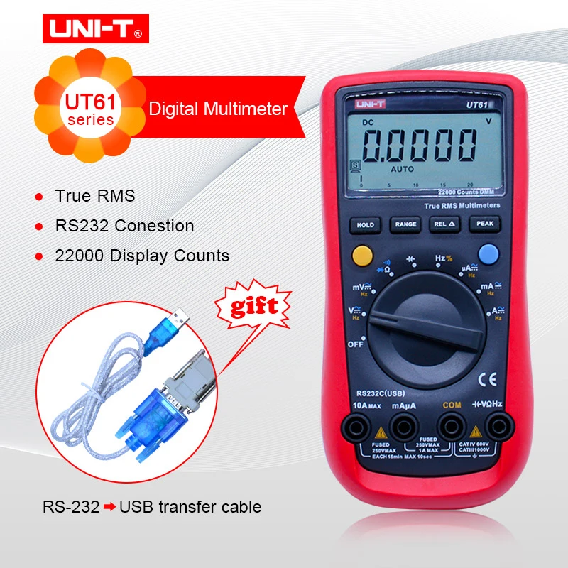 UNI-T UT61A UT61B UT61C UT61E Цифровой мультиметр true RMS RS232 интерфейс мультиметр Авто диапазон с ЖК-дисплей подсветки