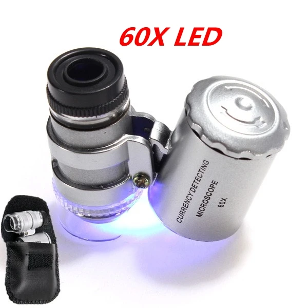 60X Мини-микроскоп Ювелирная Лупа объектив с подсветкой увеличительное стекло 3 светодиодный с уф светом с кожаным чехлом