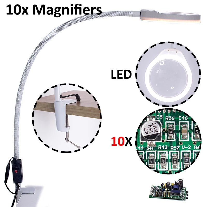 Настольный зажим на лампа с увеличительным стеклом освещенный, подсвеченный 10X Оптическая лупа для осмотр печатной платы Красота стоматоло...