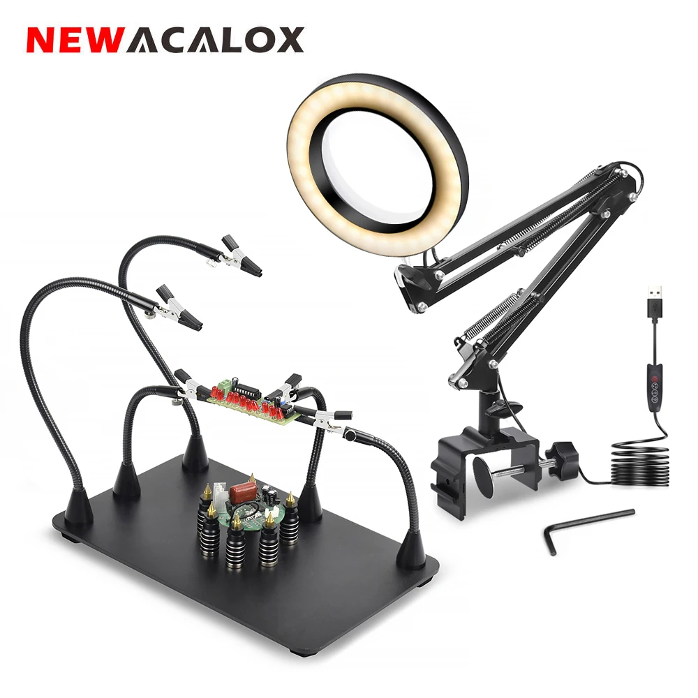 NEWACALOX магнитный зажим для крепления печатной платы паяльная подставка 5X Лупа с светодиодный светильник держатель паяльника набор инструме...
