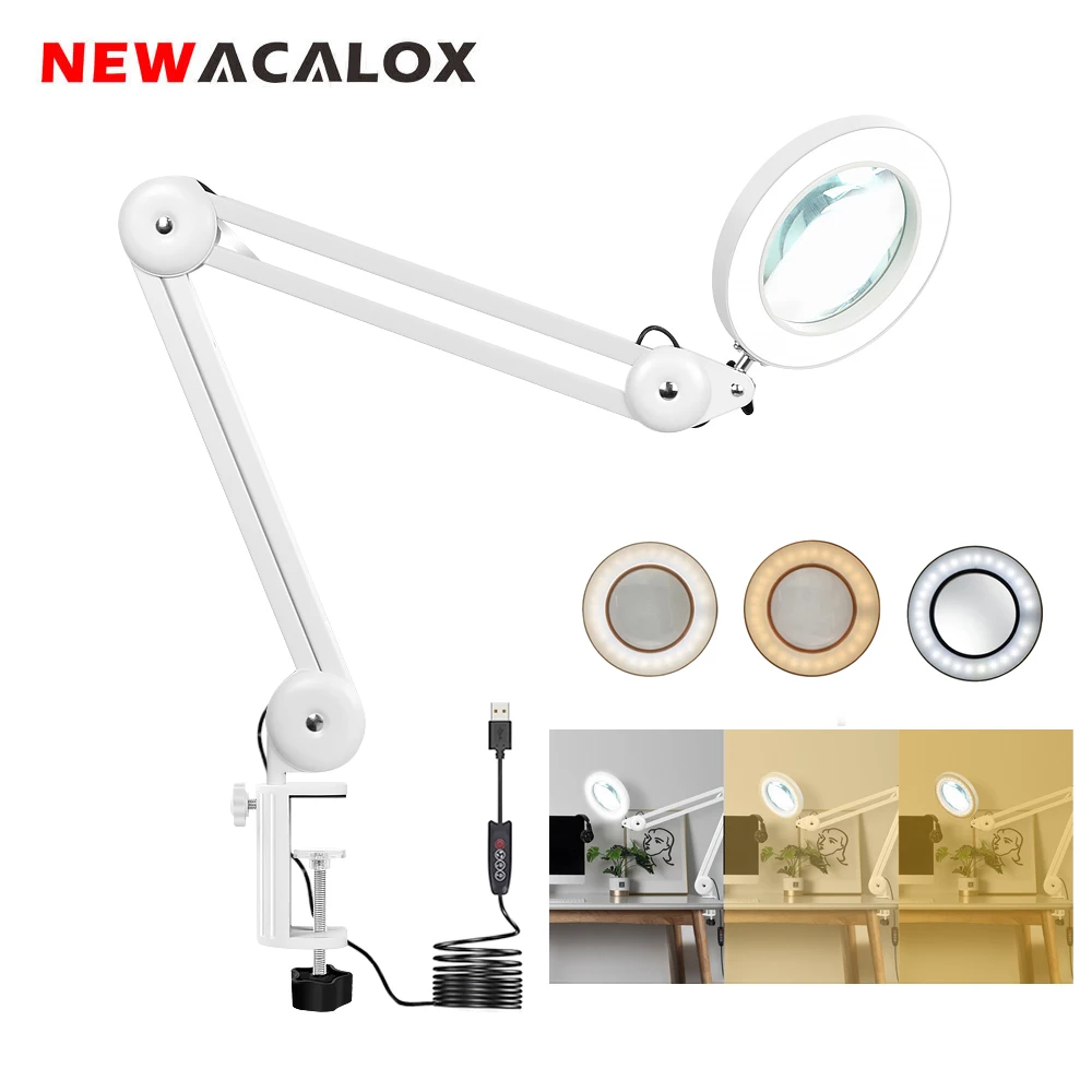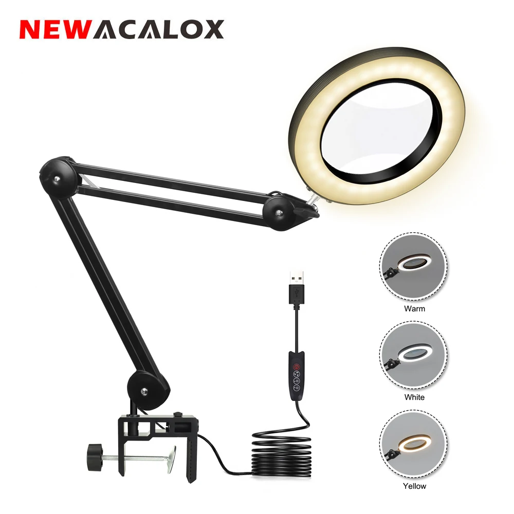 NEWACALOX USB 5X складывающееся увеличительное стекло светодиодный настольная лампа Ювелирная Лупа пайка Третий ручной подсветкой стеклянная лу...