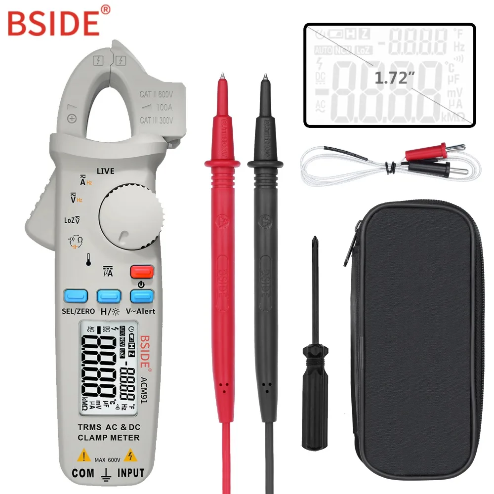 BSIDE цифровой AC/DC токоизмерительный зажим истинный RMS Автомобильный ремонт авто-Диапазон мультиметр проверка в режиме реального времени NCV темп Частотный конденсатор тестер
