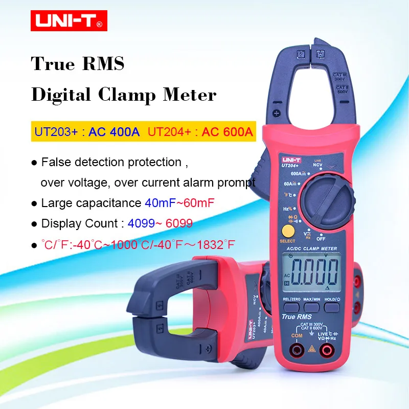 UNI-T UNI T True RMS цифровой клещи постоянного тока переменного тока UT203 + UT204 + 400A-600A мультиметр автоматический диапазон защита от ложного обнаружен...