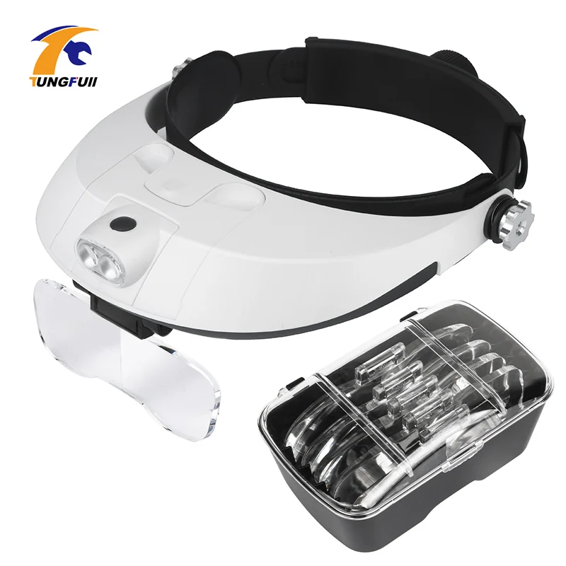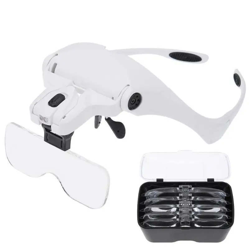 1.0X 1.5X 2.0X 2.5X 3.5X Регулируемая Лупа 5 объектив лупа светодио дный СВЕТОДИОДНЫЙ Свет Оголовье Лупа Стекло светодио дный LED увеличительное стекло...