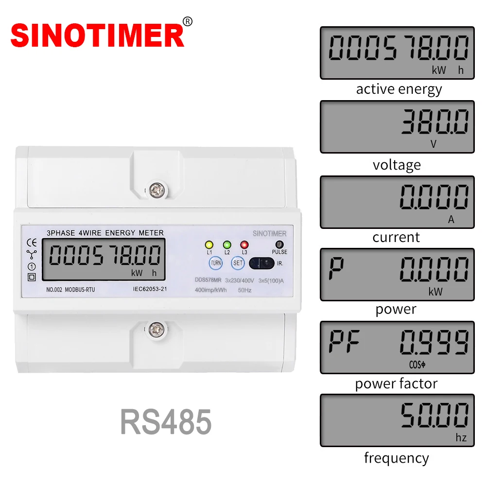 RS485 Modbus Многофункциональный din-рейку 3 фазы 4 провода ЖК-дисплей ваттметр электронный измеритель энергопотребления 5-100A 380 В AC 50 Гц