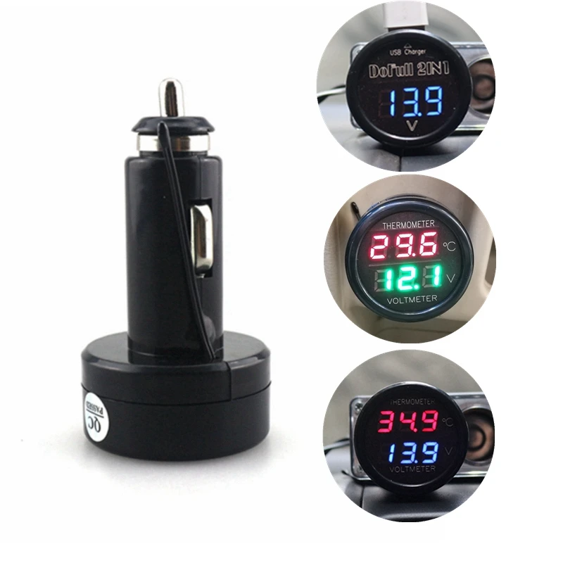 Цифровой Авто DC 12 В в В 24 в автомобиль термометр Вольтметр 2 в 1 Температура Напряжение мониторы красные светодио дный, синие LED двойной диспл...