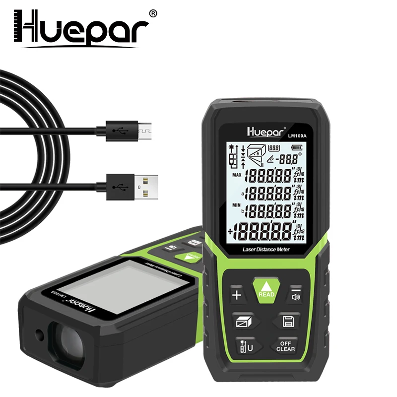 Лазерный дальномер 330Ft/100M(165Ft/ 50M 390Ft/120M) с подсветкой LCD лазерный измерительный M/In/Ft с литий-ионным аккумулятором и электрическим датчиком угла