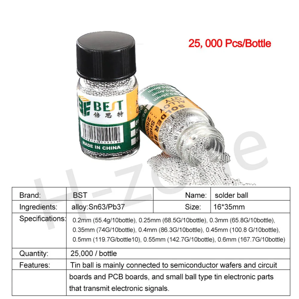1 бутылка шары для реболлинга (0,2 0,25 0,3 0,35 0,4 0,45 0,5 0,55 0,6 0,65) припоя BGA этилированного Для BGA паяльная Инструменты для ремонта