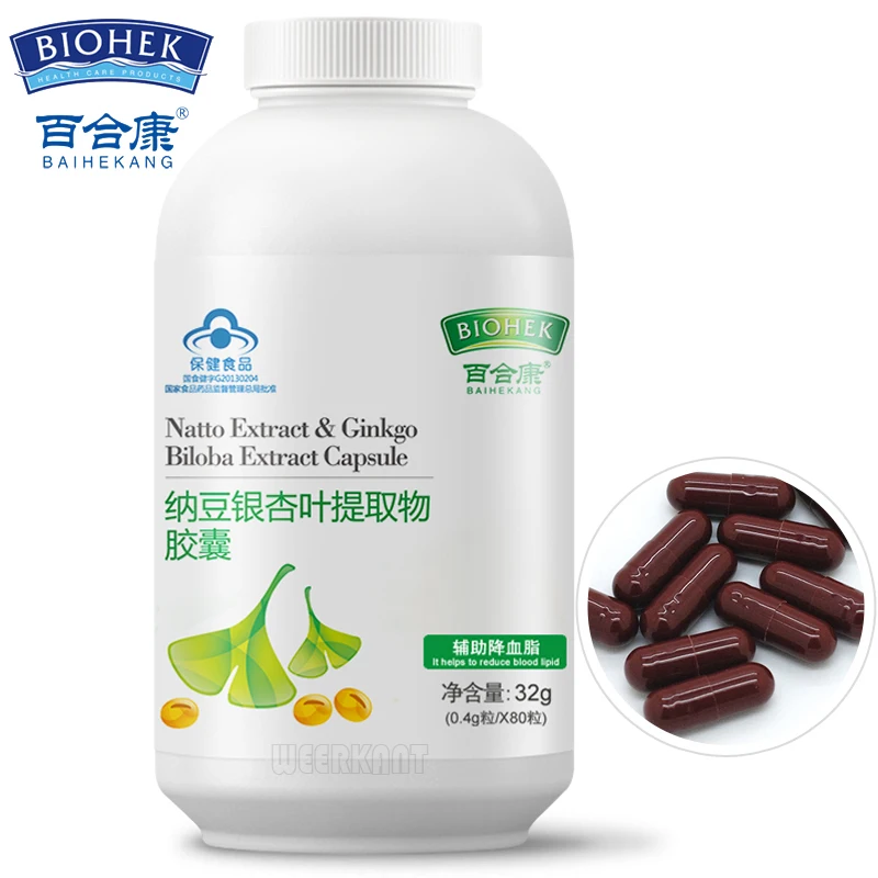 2 бутылки листок гинкго билоба экстракт с экстрактом Natto обеспечивает флавонгликозиды уменьшить Липиды крови