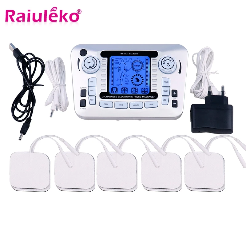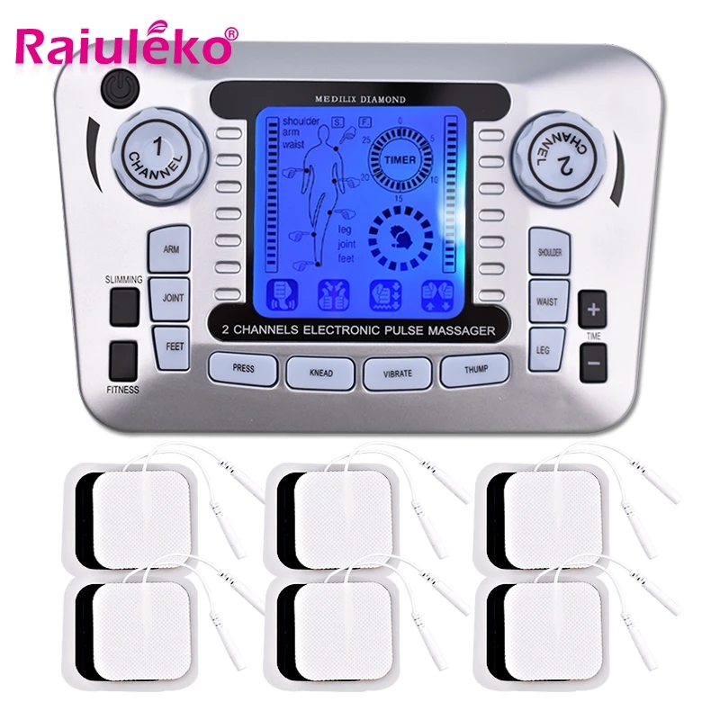 ЖК-экран двухканальный выход TENS EMS облегчение боли электрический стимулятор мышц нерва цифровой терапевтический массажер физиотерапия