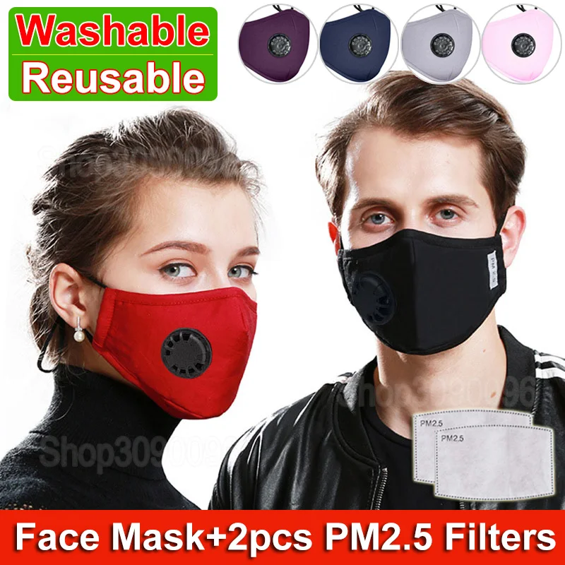Хлопковая смываемая маска для лица маска для рта против пыли, гриппа многоразовый респиратор дыхательный клапан маски с 2 фильтром защитная маска