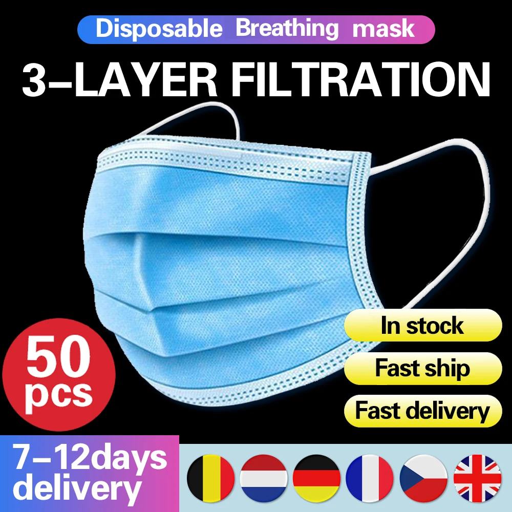 50 шт нетканые одноразовые маски хирургические маски со ртом для лица дыхательная защитная маска против гриппа PM2.5 эластичный уход за лицом