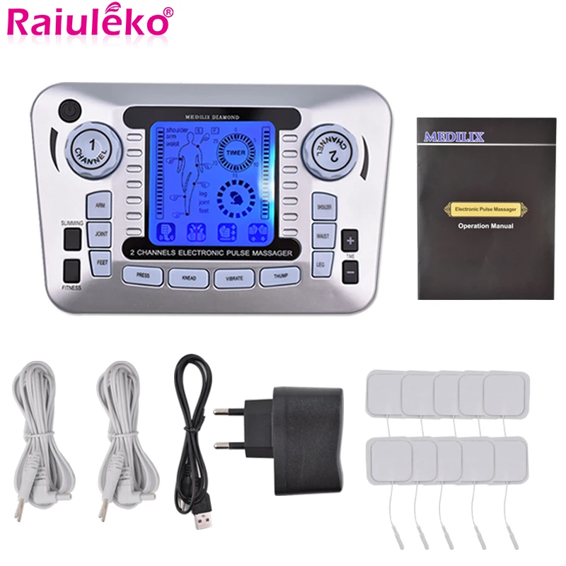 Tens Fisioterapia машина 4 десятки электродов для меридианского терапевтического аппарата мышечный массажер стимулятор 12 режимов аппарат для элек...