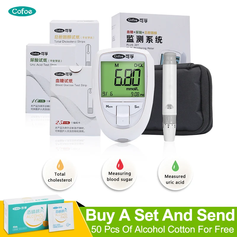 Cofoe 3в1 измеритель уровня холестерина и мочевой кислоты и глюкометра в крови бытовой глюкометр тестер для диабета монитор и тест-полоски и Ланцеты