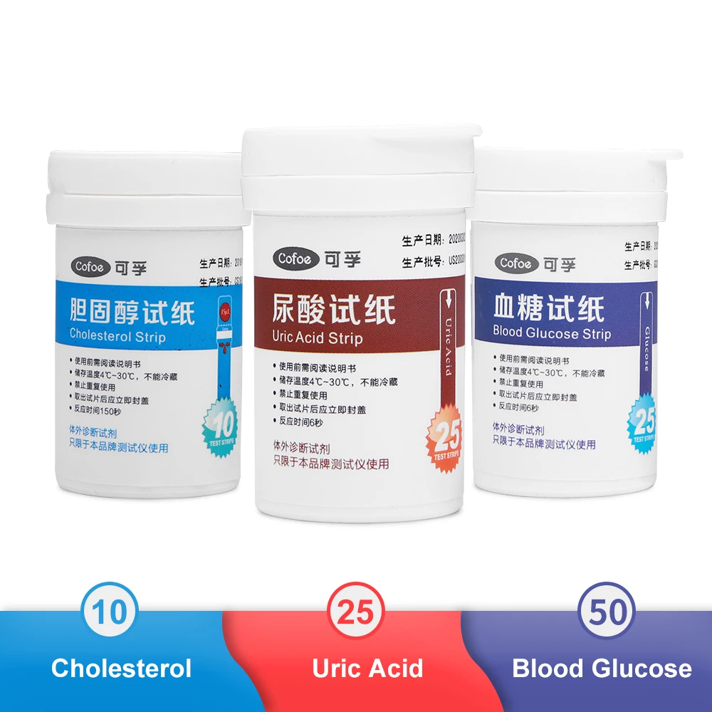 Cofoe холестерин и глюкоза в крови и Мочевая Кислота 3 в 1 тест-полоски Бесплатные Ланцеты и протирать только для Cofoe многофункциональный детектор RF-XT-0
