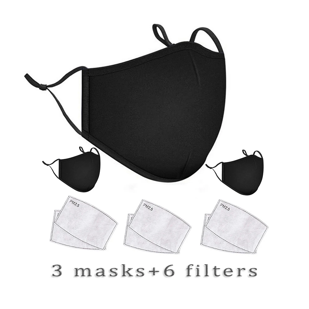 3 шт. хлопковые индивидуальные маски многоразовые маски для лица черная Пылезащитная унисекс маски для лица, рта с фильтром модные