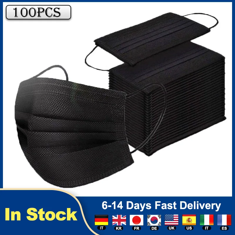 100 шт черные синие маски для лица одноразовые 3 слоя Пылезащитная Маска Анти-пыль одноразовая маска 3-слойная Нетканая маска FFP3 маска ушные петли маска