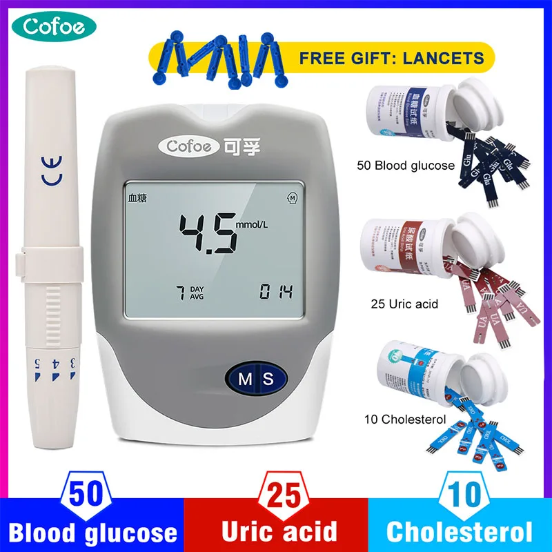 Cofoe 3в1 измеритель уровня холестерина и мочевой кислоты и глюкометра в крови бытовой глюкометр тестер для диабета монитор и тест-полоски и Ланцеты